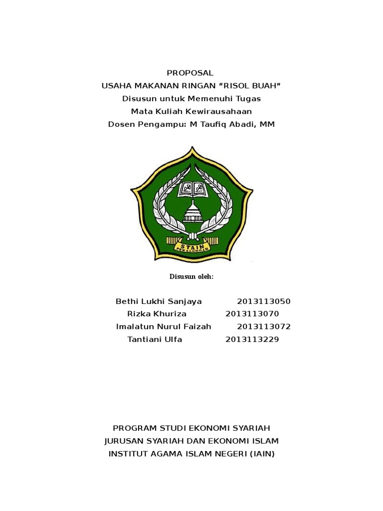 Contoh proposal bisnis contoh proposal usaha makanan a.pendahuluan latar belakang pada saat ini banyak orang yang ingin membuat acara atau kegiatan secara simpel dan efisien. Biasanya mereka lebih memilih untuk memesan makanan daripada membuatnya sendiri dengan alasan pertimbangan waktu. Dalam dunia pkwu bnyak sekali kegiatan yang berkaitan dengan usaha, salah satunya kegiatan membuat makanan donat dari bahan ketela adalah kegiatan yang tidak lepas dari pkwu. Contoh proposal pengajian akbar isro mi'raj. Contoh proposal pengajuan dana merupakan proposal yang ditulis guna meyakinkan calon pemberi dana agar mau dan percaya untuk mensponsori program, produk, maupun layanan tertentu.